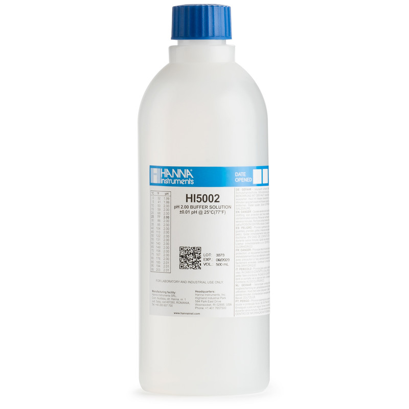 HI5008 is a premium quality pH 8.00 technical calibration buffer that is NIST traceable and supplied with a Certificate of Analysis. Hanna calibration buffers have the lot number and expiration date clearly marked on the label and are air tight with a tamper-proof seal to ensure the quality of the solution. Hanna's line of technical calibration buffers have been specially formulated to have an expiration of 5 years from the date of manufacture for an unopened bottle.