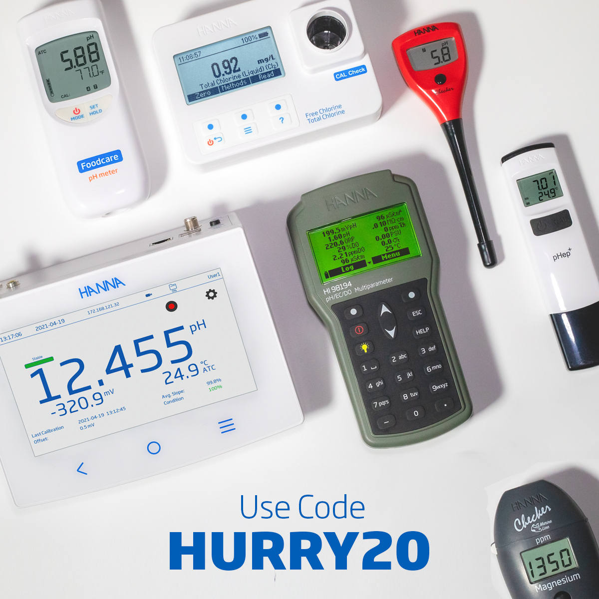 *Valid online only. Use Code: HURRY20 at checkout. Get 20% off and free ground shipping. No minimum required. This special offer only applies to an order shipped to a single address within the contiguous United States. This special offer is not applicable to Hanna dealers, retailers, and resellers. Cannot be combined with any other Hanna offers, discounts or promotions. Cannot be applied to previous Hanna orders or purchases. Cannot be applied to any Hanna Automatic Titration Systems. Cannot be applied to any Hanna Marine or Aquarium Products. This special offer expires 12/30/2025 at midnight EST, no exceptions.